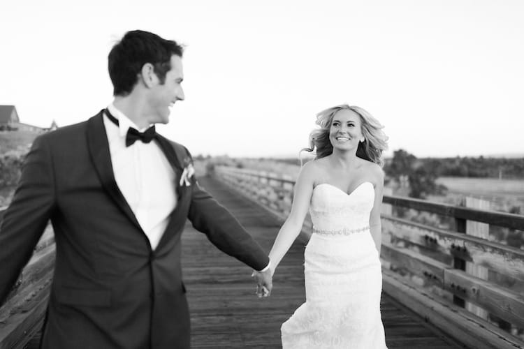 The Bend, Oregon resort was the perfect setting for a rustic affair infused with elegant touches. AJ readied with her ladies in the bridal suite before meeting Steven on the grounds for breathtaking first look portraits. The bride and groom, said “I do!” in an open-air ceremony overlooking the property’s sweeping landscape, then proceeded to the barn lawn for cocktail hour. When it came to design details, we love how the couple let the beauty of the venue take the lead. Bistro lights, creamy blooms and polished farm tables came together to create an effortless ambience of laid-back refinement.