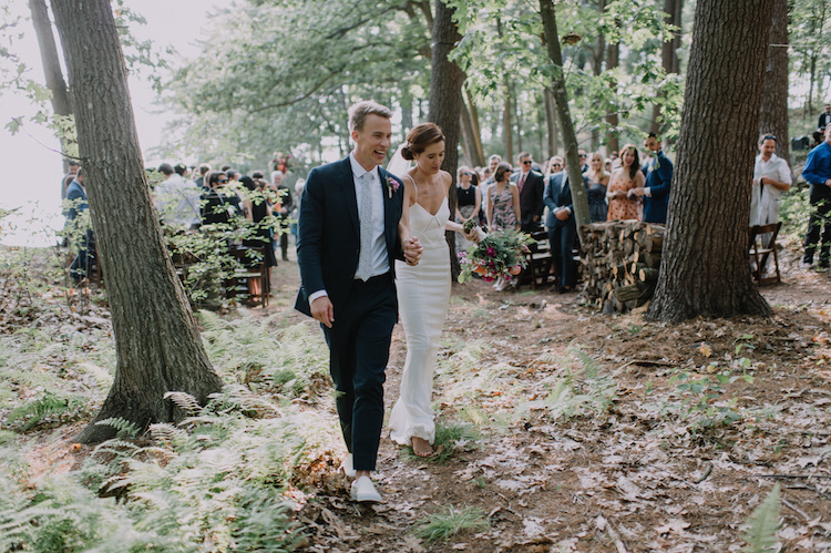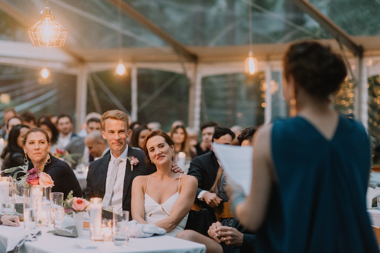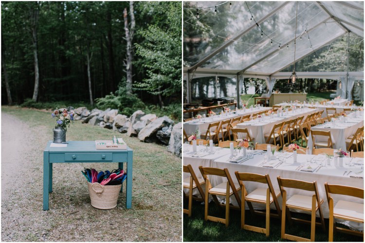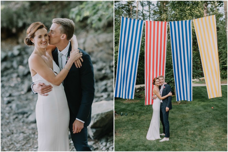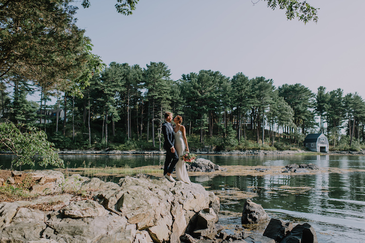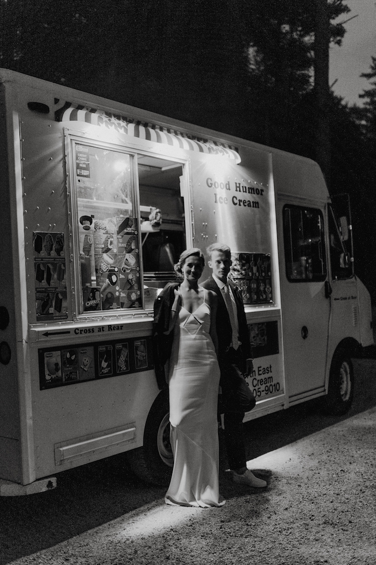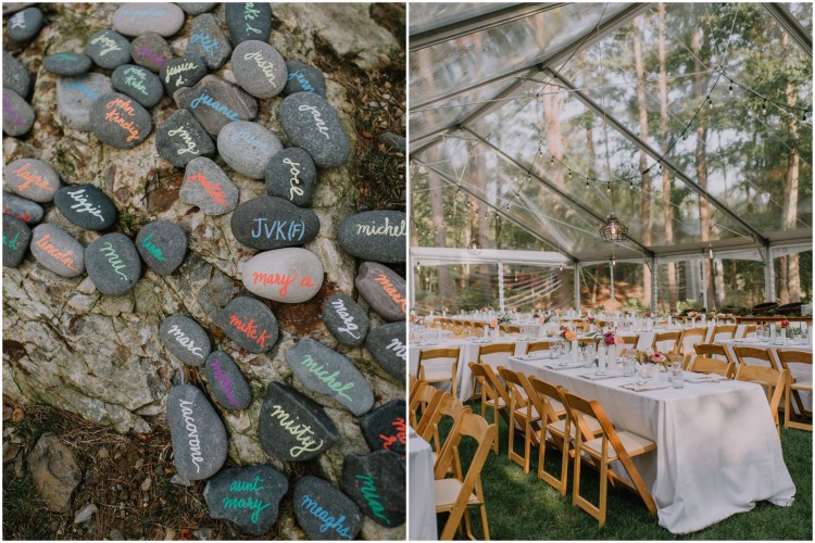 Chloe and Schwenk tied the knot at the bride’s family home on Kittery Point in Southern Maine. Guests arrived on the big day to enjoy some pre-ceremony cocktails before heading down to the water’s edge for the “I do’s.” We love how every element of the day reflected the couple’s tastefully laid-back style. Dinner was held beneath a clear tent where guests gathered around family-style tables set with white linens, fern leaves, and hand-painted river stone escort cards. An ice cream truck joined the party to end the evening on a sweet note.