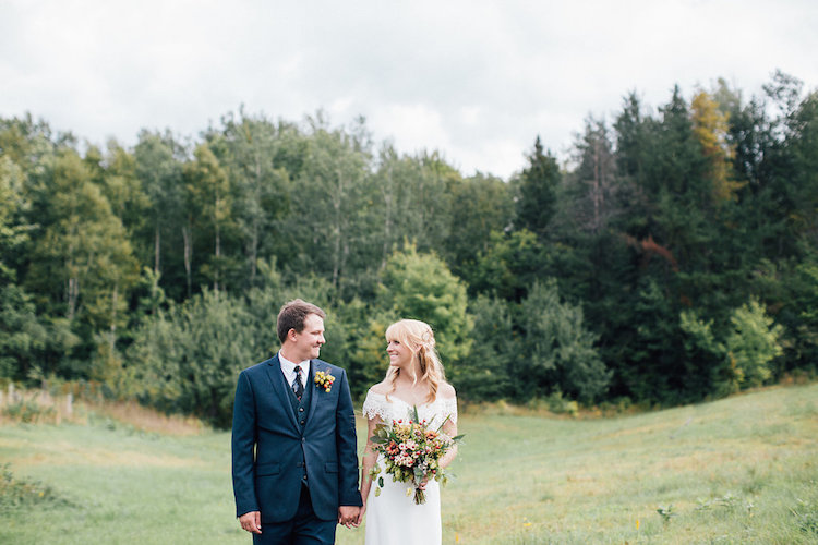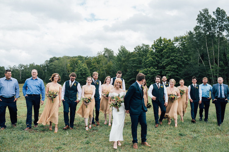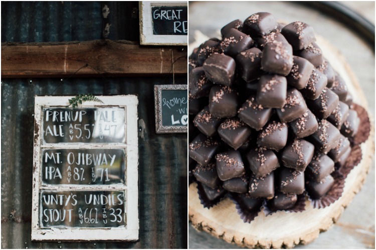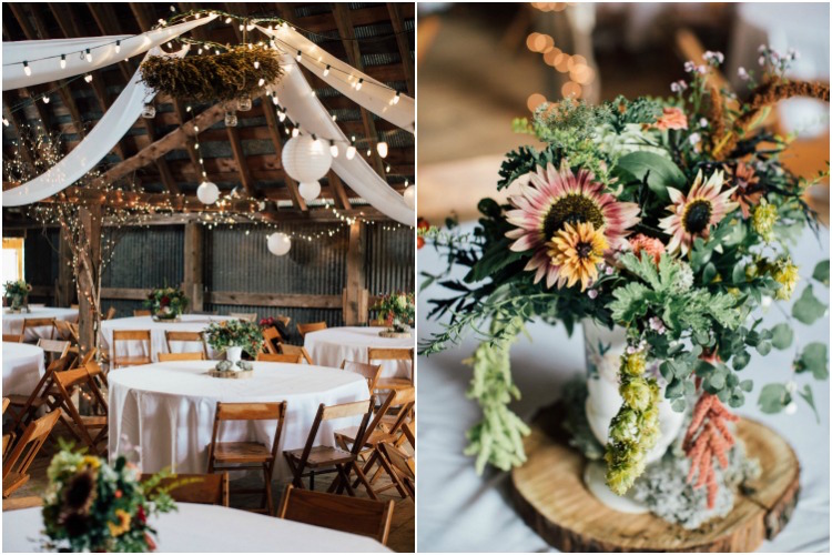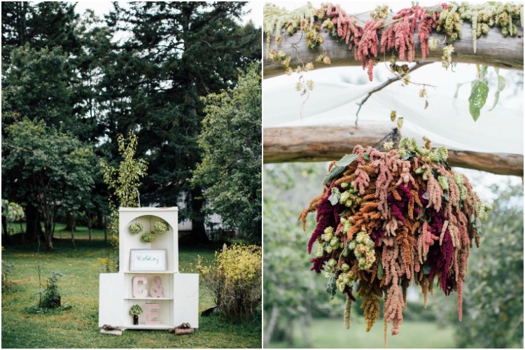 Christy and Eric crafted a celebration infused with the things that they love most. The pair said, “I do!” in a cozy clearing amongst the venue’s rolling apple lanes. After the ceremony, guests gathered outside of the barn for cocktail hour. Throughout the design you can see elements that highlight Christy and Eric’s personal touches. Hops in the bridal bouquets and boutonnieres were a nod to the groom’s pass time of brewing–and drinking!–beer. Inside the reception, Christy’s love for all things vintage is obvious in charming antique accents dotted throughout the space. Thank you to Vafa Photography for sharing these gorgeous photos with us!