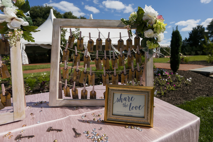 When Dawn and Joey started planning their wedding, the first stop was the venue. They knew they wanted a romantic and elegant atmosphere with plenty of outdoor space and natural beauty. Once they laid eyes on Belmont Manor, that was it! On the big day, their vision came together flawlessly thanks to special touches like an escort card display of antique frames, key bottle openers, and soft blush touches.