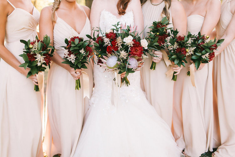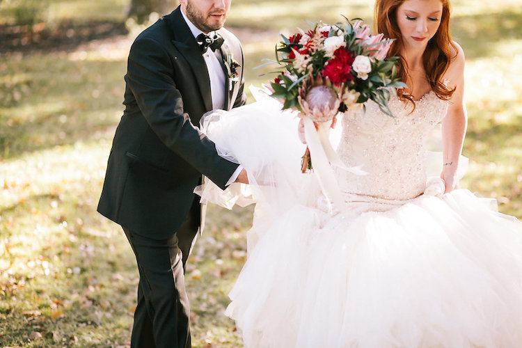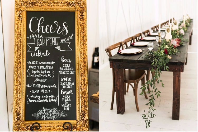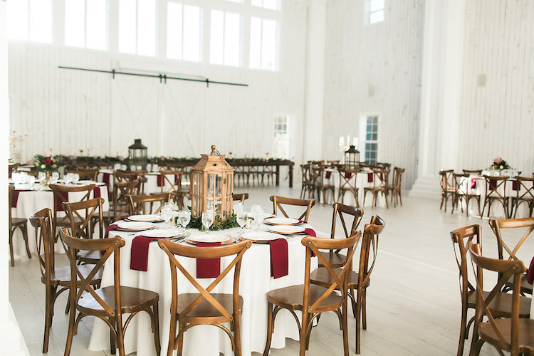 The couple always knew they wanted to have an autumn wedding. When they first toured The White Sparrow, they knew the venue’s all-white interior would be the perfect backdrop for an elegant design focused on lush greenery and plenty of rich fall-inspired colors. Dayton and Andy were married on the property’s lawn by their long-time pastor. Guests enjoyed cocktails and games outside before gathering in the barn’s breathtaking interior for the reception. Dayton’s palette of marsala, blush, and beige popped in the airy event space, accented by polished farm tables and green accents. We love how the couple incorporated our favorite fall trends with timeless touches to create a sophisticated, yet rustic vibe.