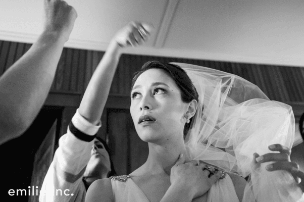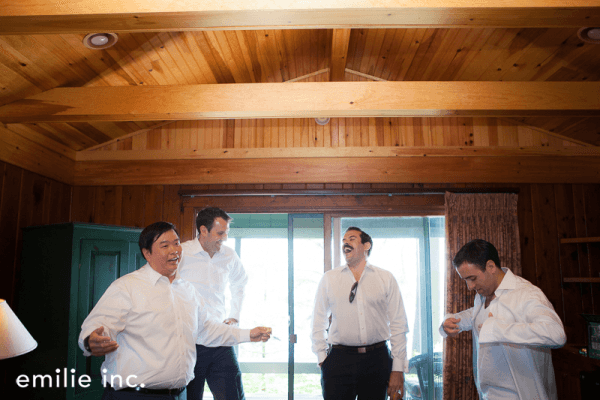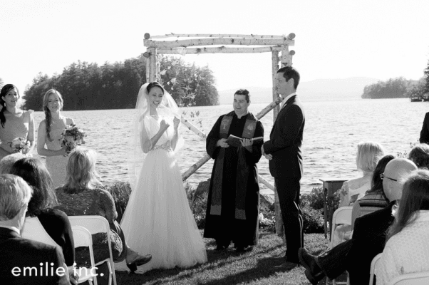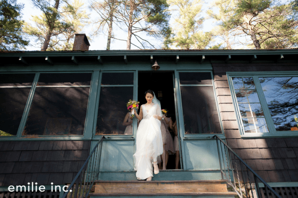 Ebony and Dave met abroad while participating in Temple University’s semester-long study-abroad program in Tokyo. Being abroad, though, was just the start of their adventures. According to the couple, together they’ve “navigated five bar exams, several moves, buying a little fixer-upper in Cambridge, and adopting a dog.” After all of that, it sounds like getting married will be a piece of cake. Maine, which is well-known for its natural beauty, seemed like a great choice for the couple, who says, “We thought the grown-up summer camp atmosphere at Migis would be the perfect setting for guests to gather, relax, and celebrate. The décor, activities, and food all incorporate nods to Japan, Ebony’s apple orchard upbringing, and Dave’s family’s summer traditions.” Documenting the celebration with their usual skill and artistry was emilie inc. Thank you for the wonderful photos! To find out more about Ebony & Dave’s wedding and explore more photos, see their real wedding on LulaWed.com!