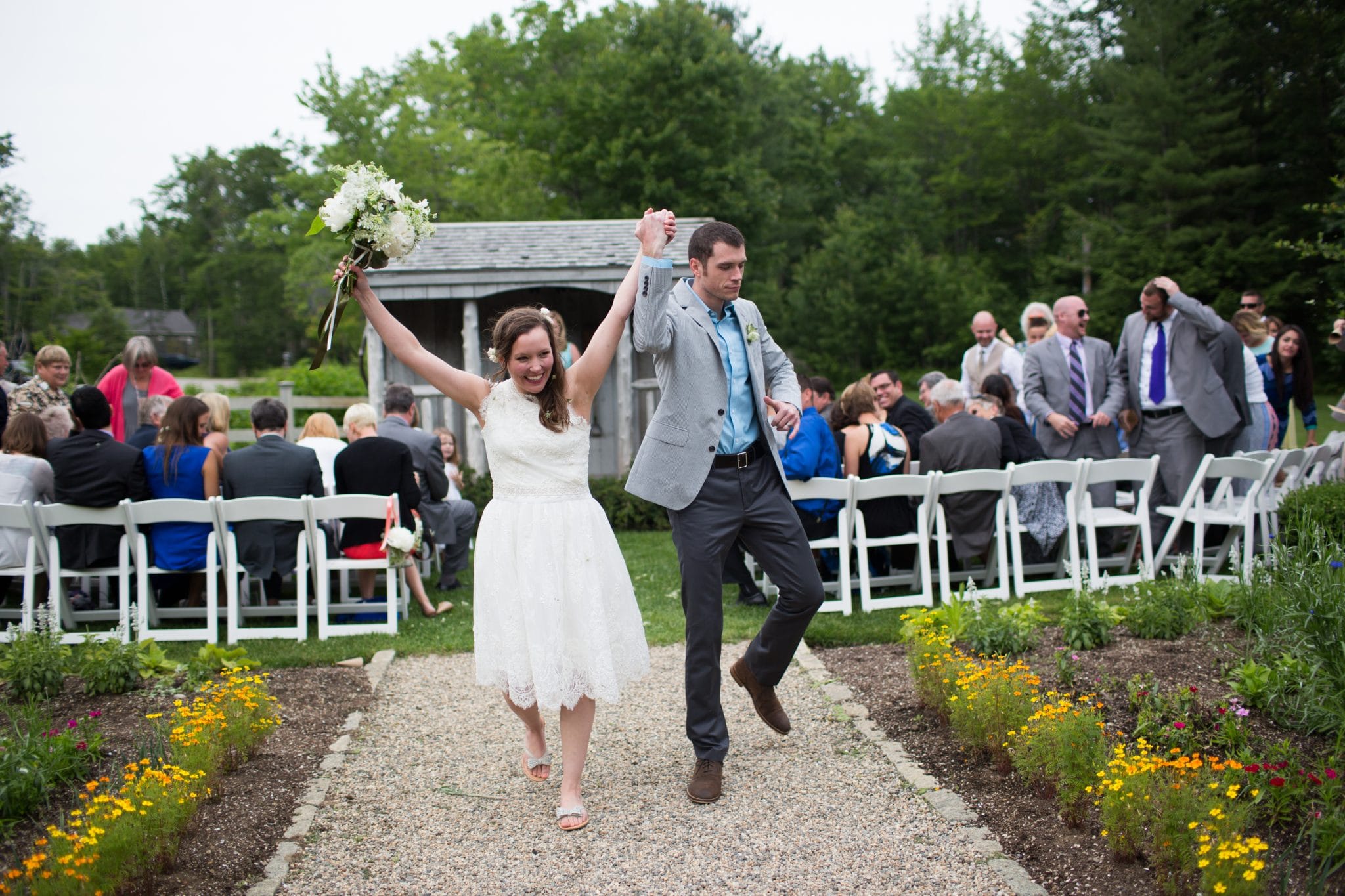 Well Kenn & Elisabeth certainly accomplished a day full of fun. From dancing down the stone path just after being pronounced husband and wife to Ken’s thoughtful toast explaining the key to their relationship’s success was having fun together. They celebrated their love with a small gathering for a garden ceremony followed by a barn reception at Kennebunkport’s stunning Hidden Pond. Thank you Emilie Inc. for capturing and sharing this beautiful day with us.