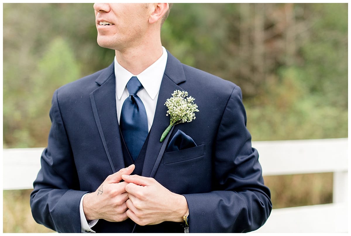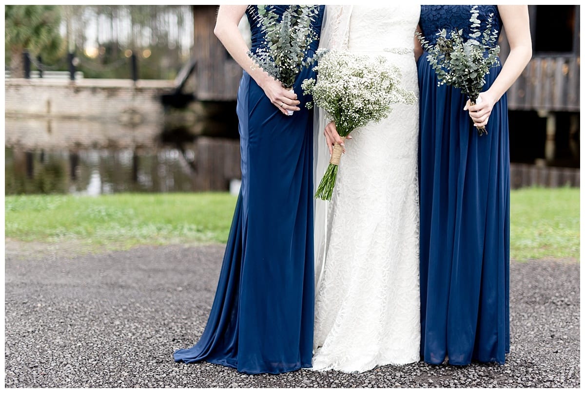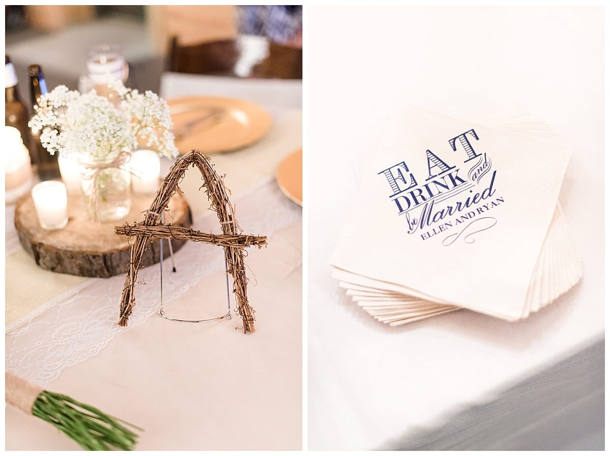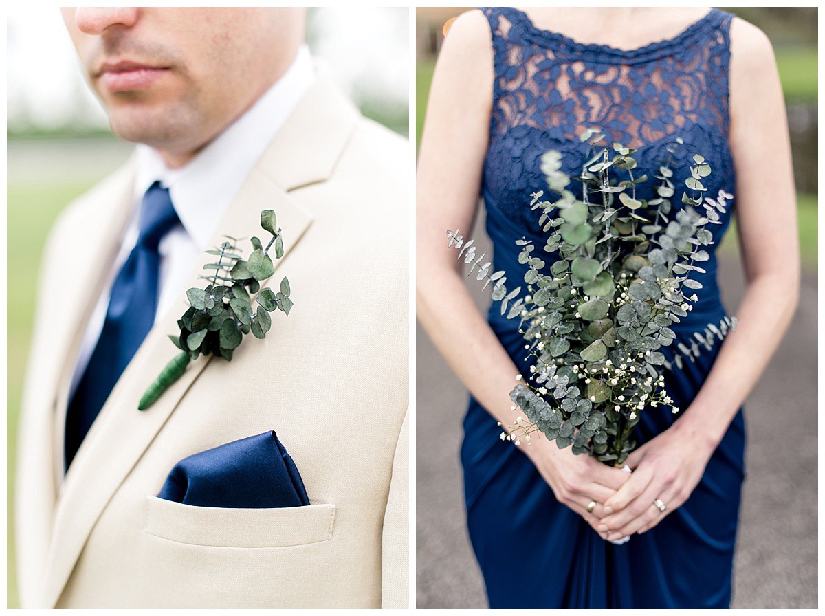 Ellen took such care with the details … they were understated, and worked really well with the venue! She made her own bouquet, as well as the bouquets for her bridesmaids, the boutineers and the centerpieces. The Eucalyptus paired beautifully with the babies breath and popped against the bridal party’s navy attire. And her dress was absolutely stunning on her!
