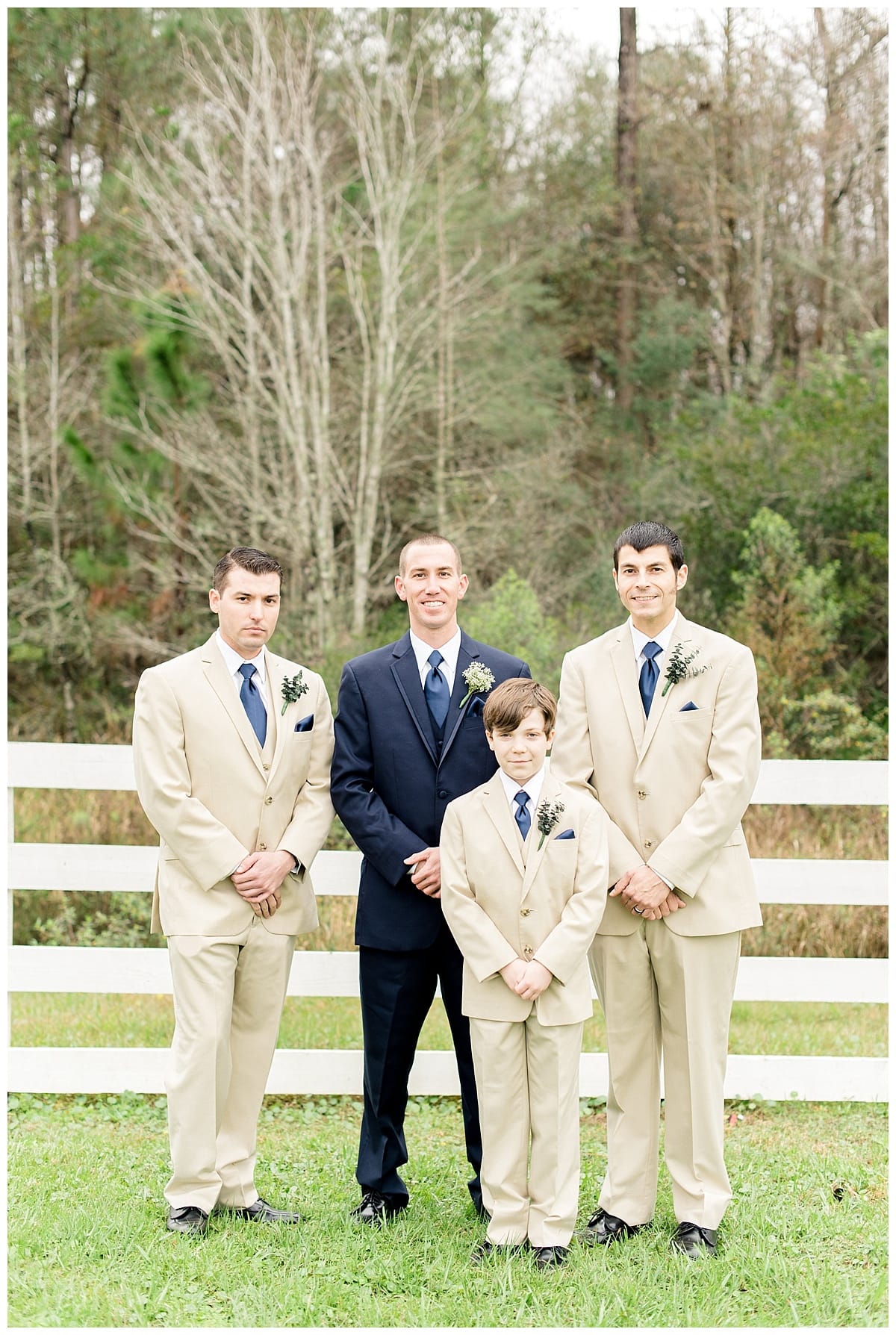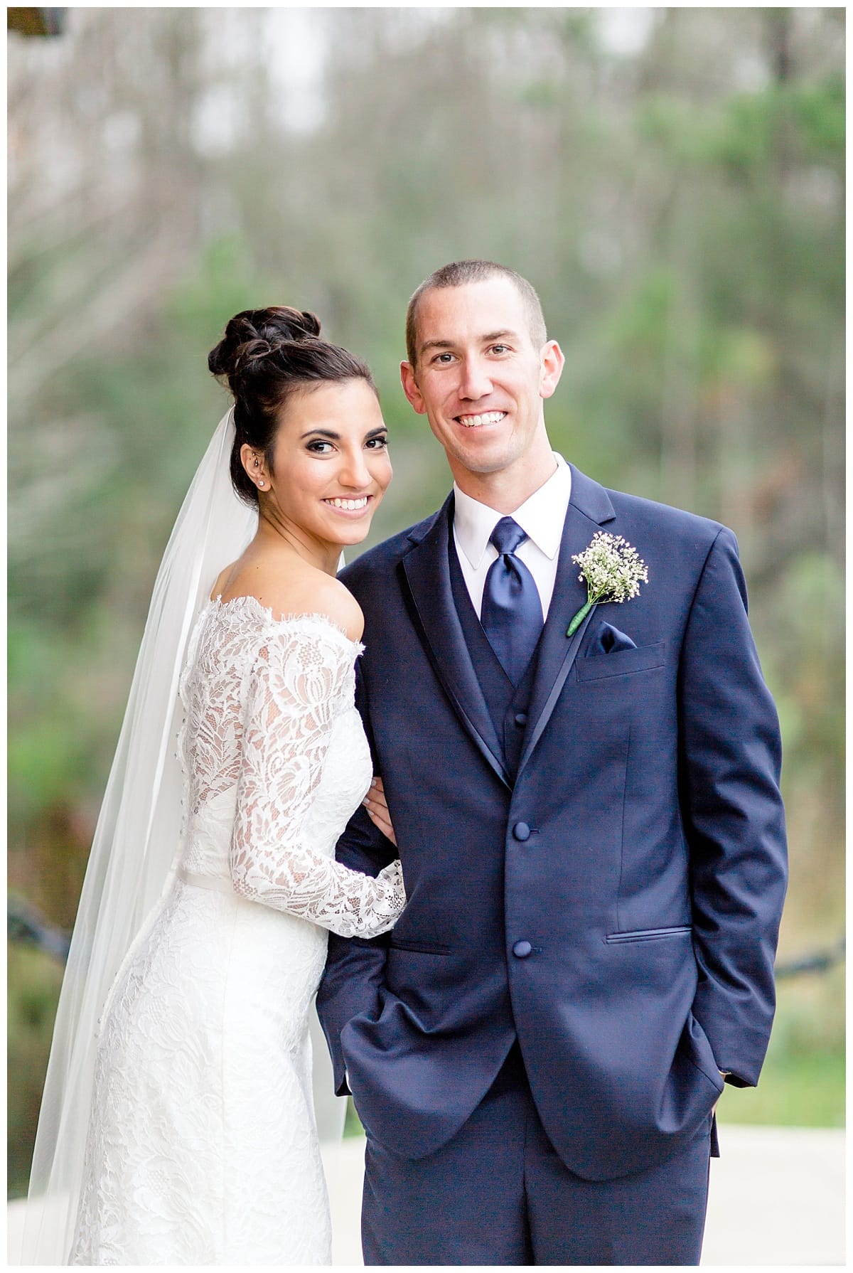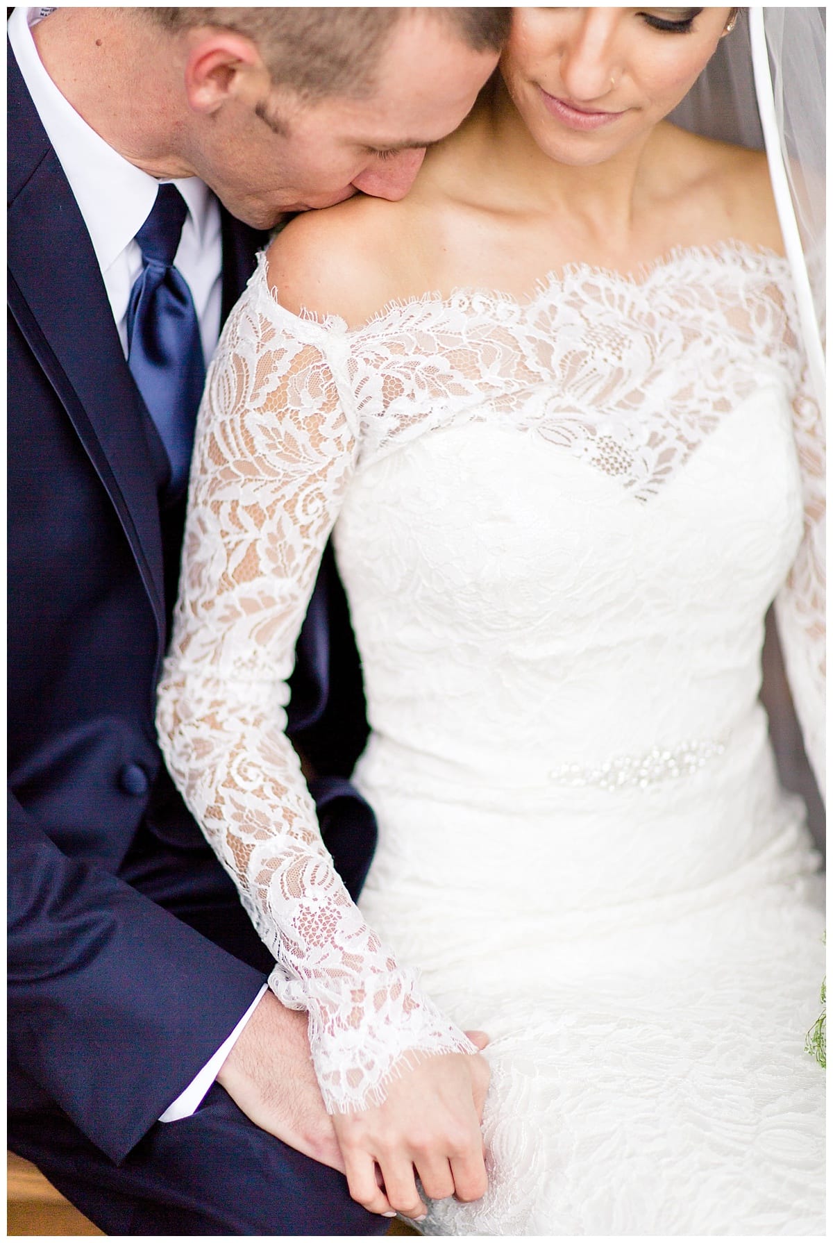 Ellen took such care with the details … they were understated, and worked really well with the venue! She made her own bouquet, as well as the bouquets for her bridesmaids, the boutineers and the centerpieces. The Eucalyptus paired beautifully with the babies breath and popped against the bridal party’s navy attire. And her dress was absolutely stunning on her!