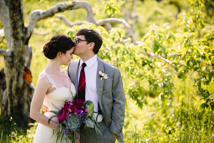 When it came time to select a wedding venue, Emily and Matt took their time finding the perfect place. They knew they wanted a natural setting with unique character, a low-key vibe and inherent beauty. Once they laid eyes on Red Apple Farm in Phillipston, MA, it was love at first sight. This rustic venue offered everything on their wish list–including farmyard friends!