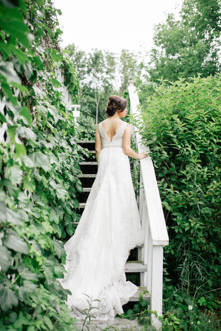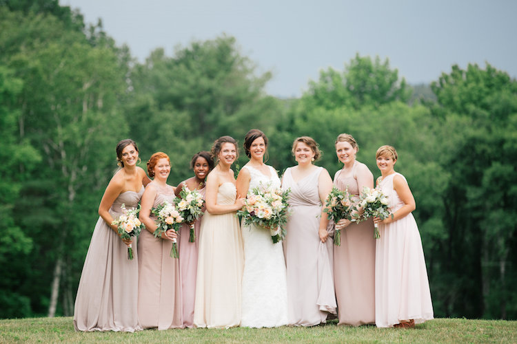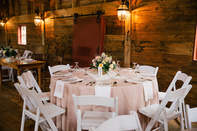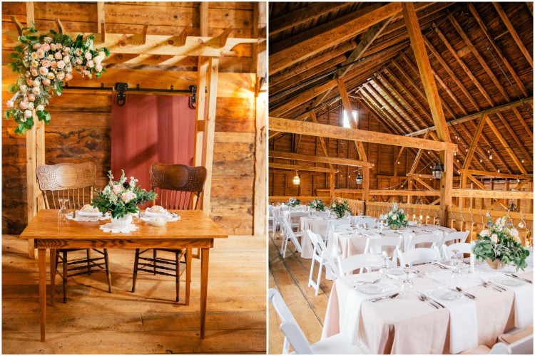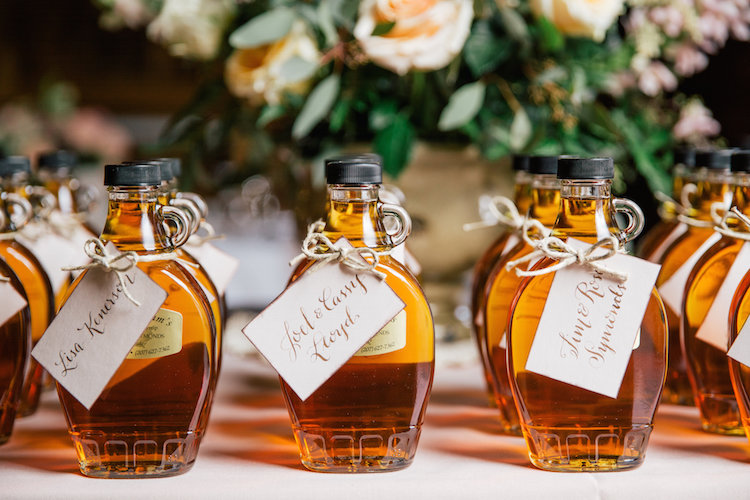 We’re head over heels for this dreamy color palette. The couple chose romantic shades of peach, ivory, and blush to complement the venue’s natural setting. Before the ceremony, Emily and Michael met in the property’s impressive gardens for a sweet first look before tying the knot in the barn. Inside the reception, guests enjoyed locally made pizza, cocktails, and personally-addressed maple syrup favors.