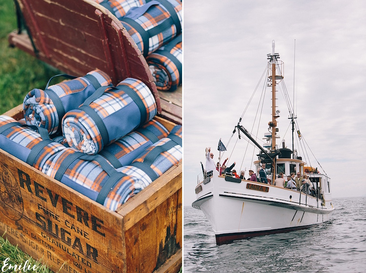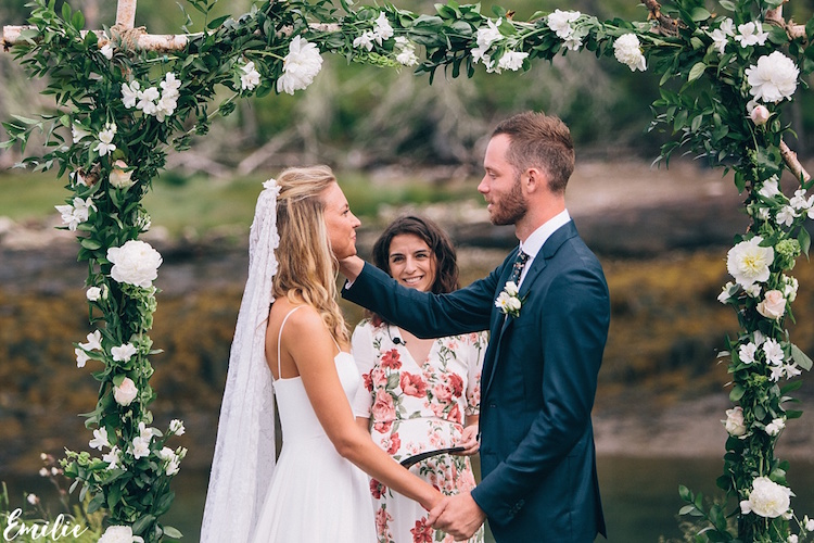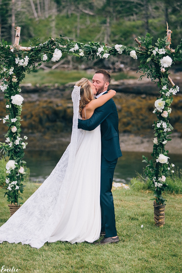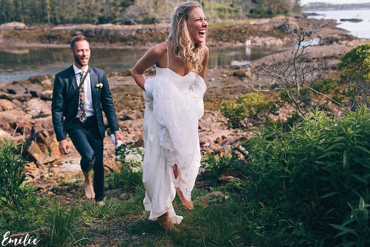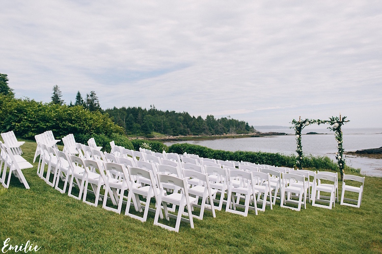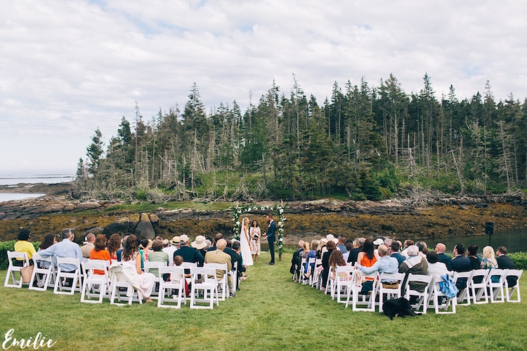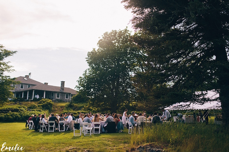 The couple welcomed loved ones to celebrate on a private island off the coast of Port Clyde, ME. On the property, classic clapboard cottages and sweeping ocean views set the tone for this laid back seaside affair. Helen and Jason tied the knot on the lawn overlooking the tranquil bay. Before joining the party, they explored the island with photographer, emilie inc., making time for a quick rowboat ride. Guests gathered for an open air reception under the stars for dinning and dancing late into the evening.