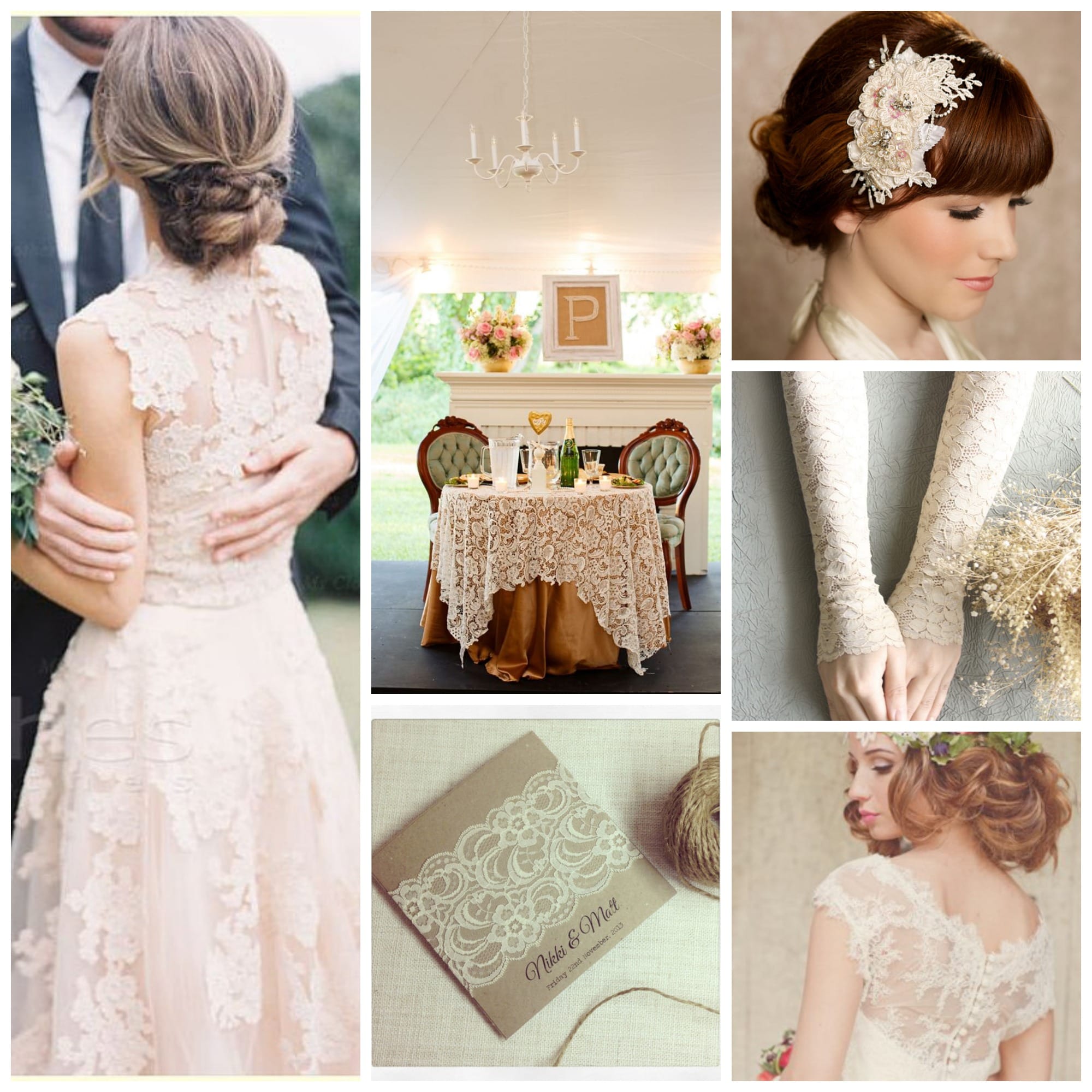 We are absolutely loving lace as the new burlap in rustic weddings. And while we don’t recommend being absolutely bedecked in lace (after all, even something as wonderful as lace can become overwhelming when worn from head to toe, festoon your wedding invitations with it and cover every single surface from tables to walls in it), we do adore lace and the old world charm it can bring to your wedding day. Here are a few of our favorite lace finds: