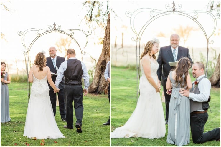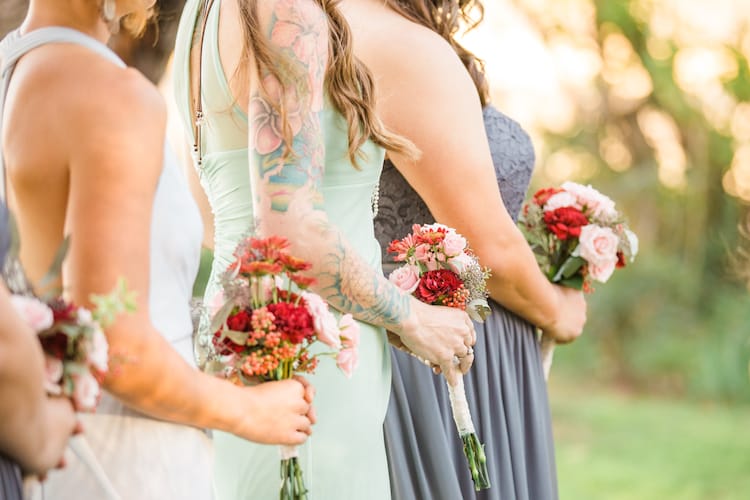 When it came time to choose their celebration site, Jaclyn and Heath knew they wanted a space with a relaxed, rustic vibe. With it’s cozy interiors, starlit dance floor and beautiful grounds, Agua Linda Farm was the obvious choice. Jaclyn knew she wanted to infuse personal family touches throughout the day. Unique details–like her daughter as Maid of Honor, DIY bouquets made with the bridesmaids, and ribbons made of her late father’s shirt wrapped around her bouquet–made the design truly one of a kind.
