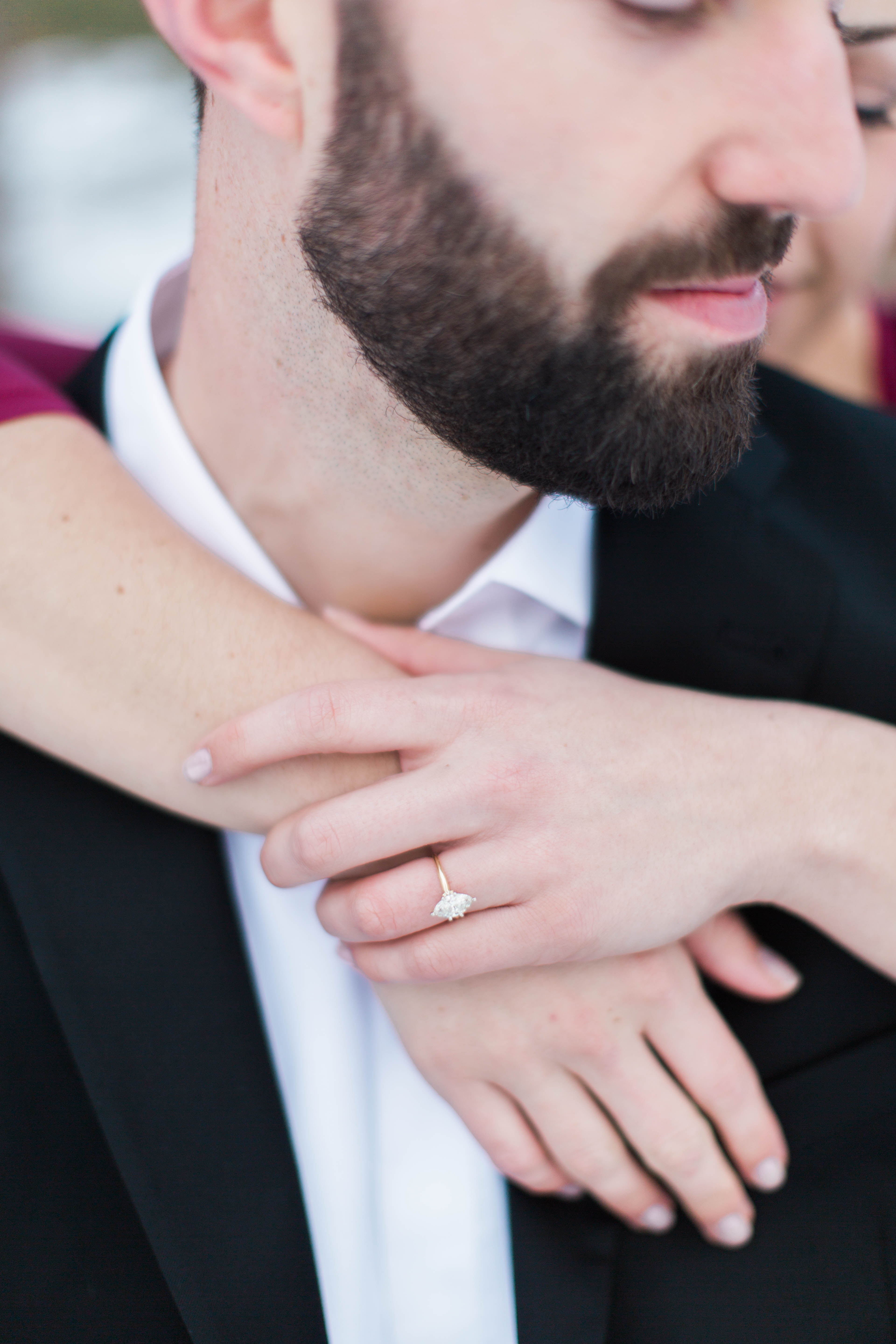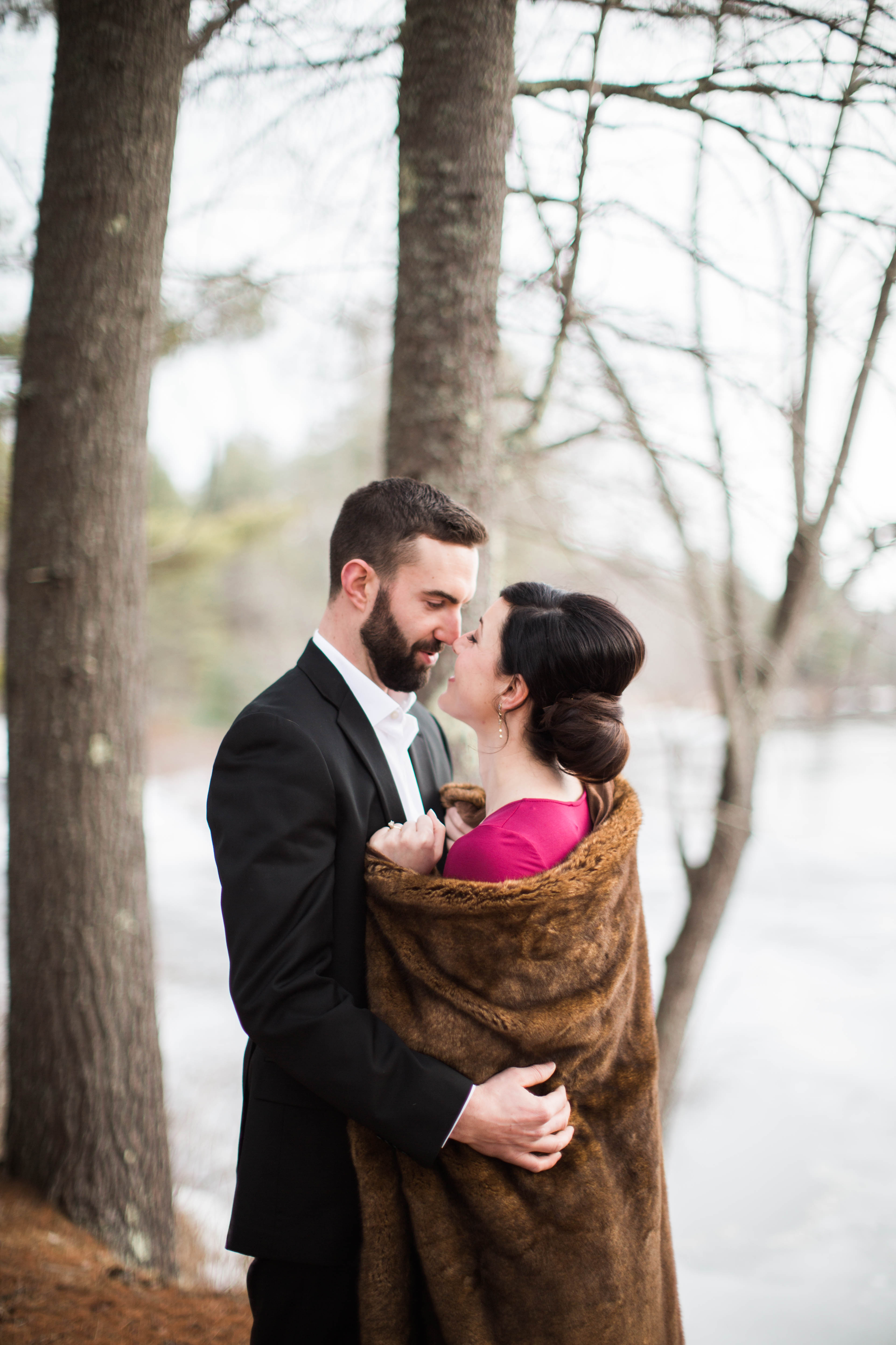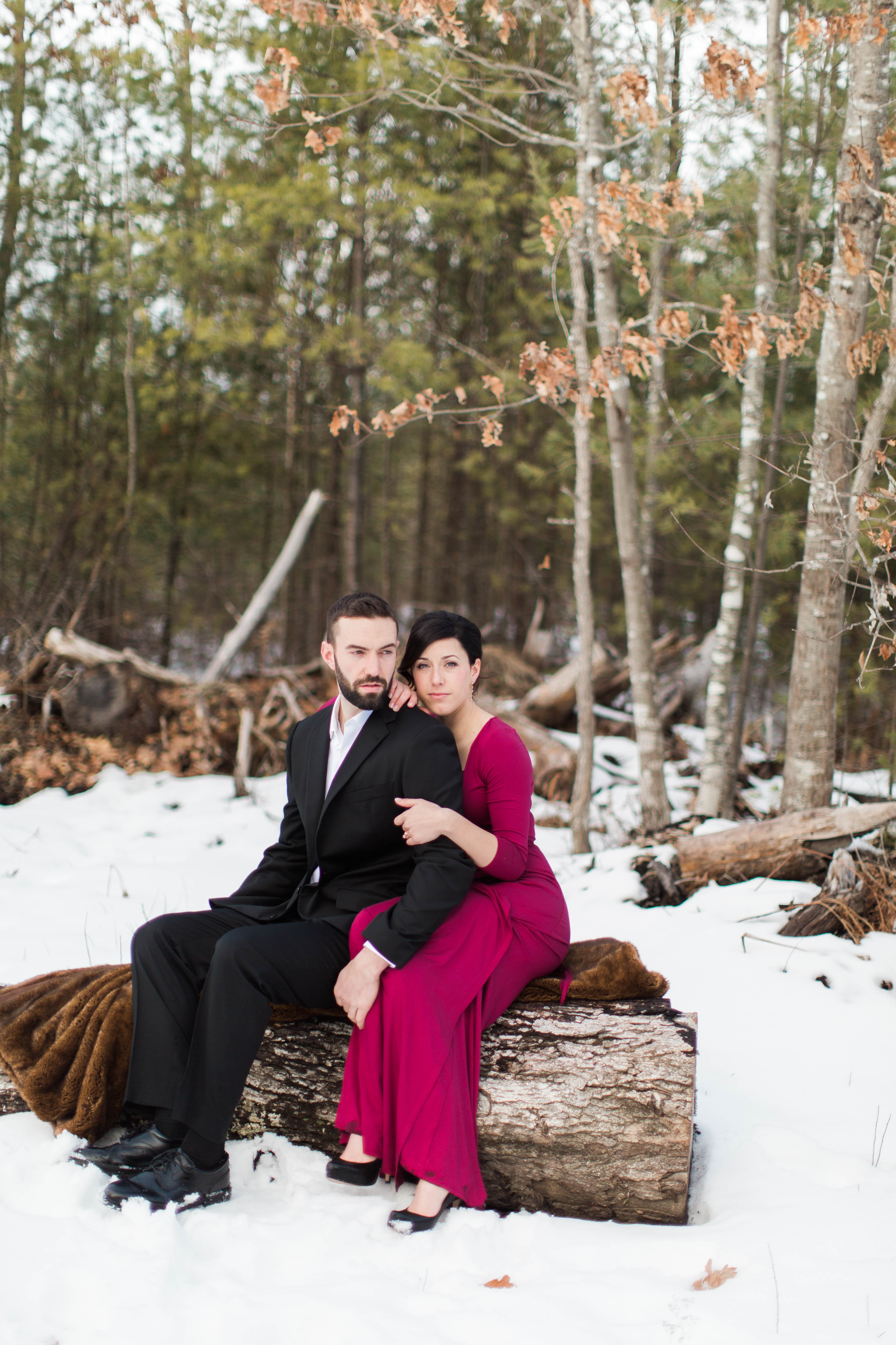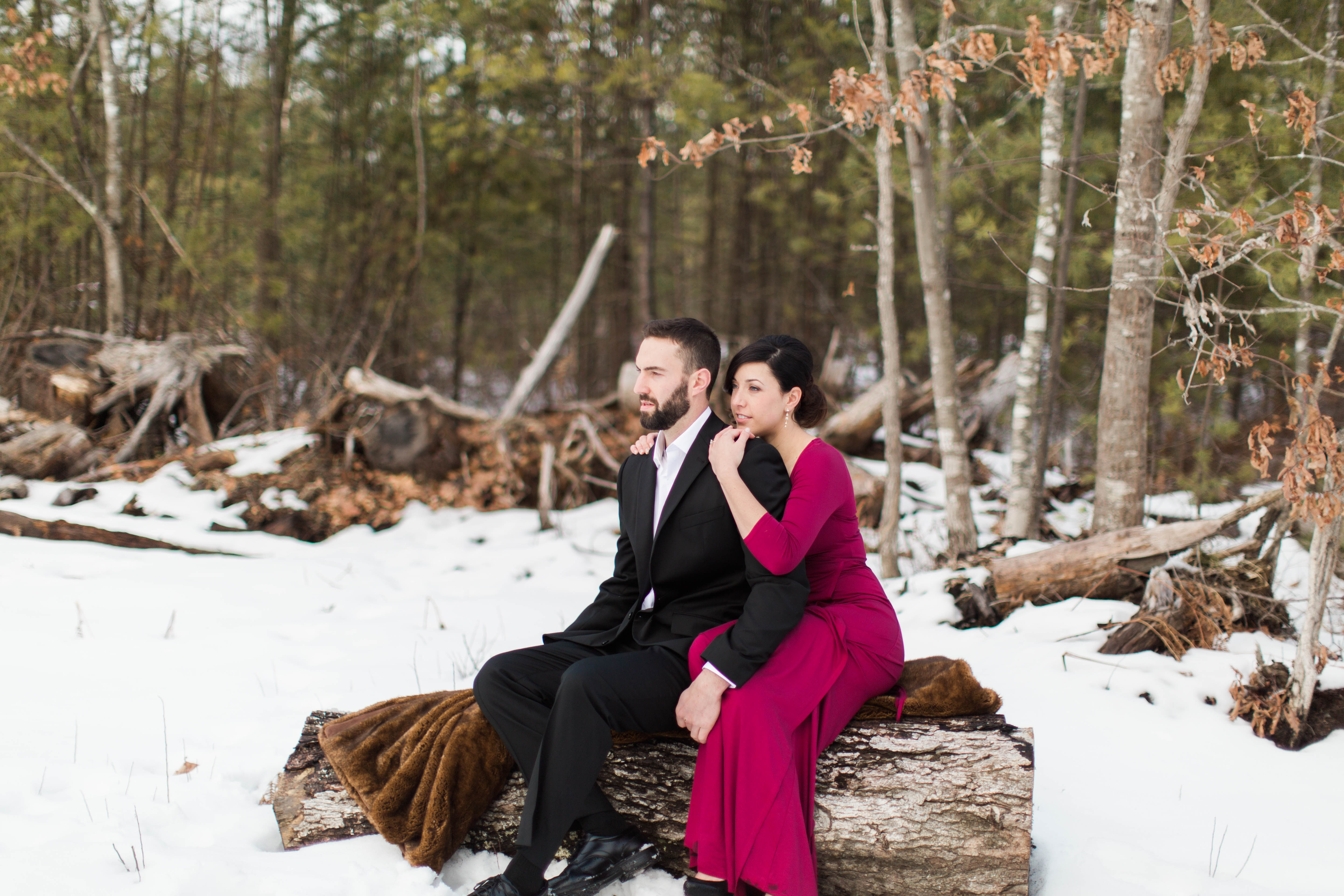 This formal winter engagement session with an elegant style sets the perfect tone for their upcoming winter wedding in 2016.