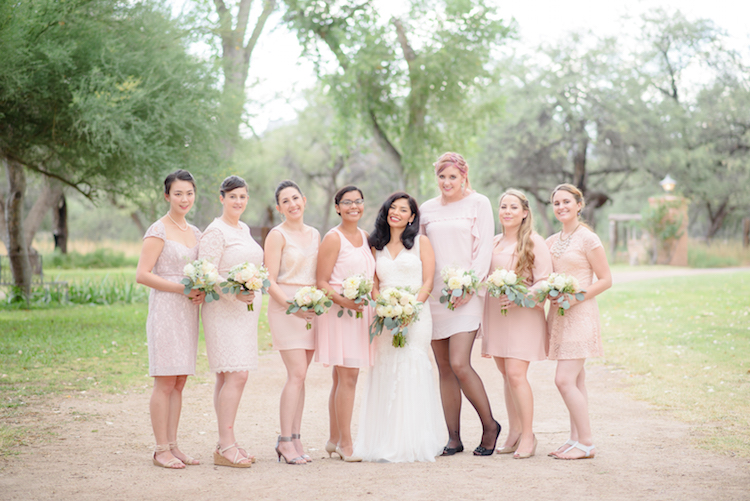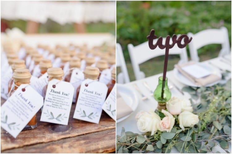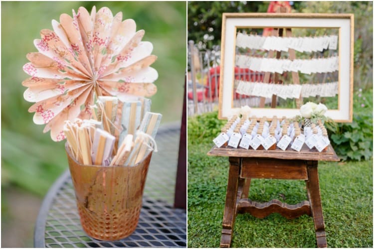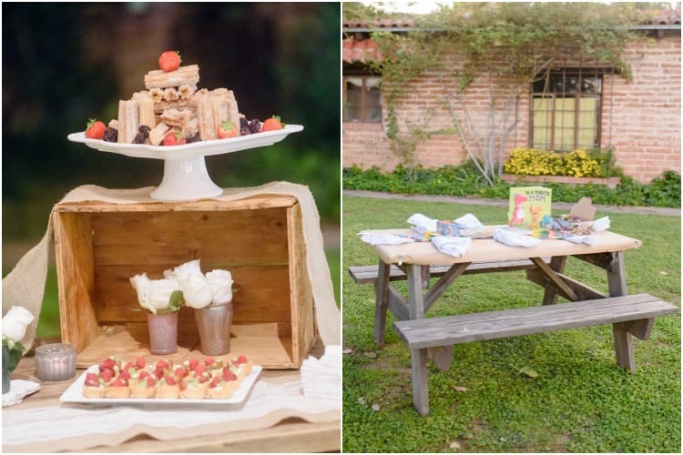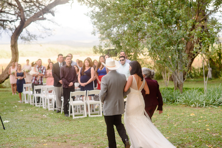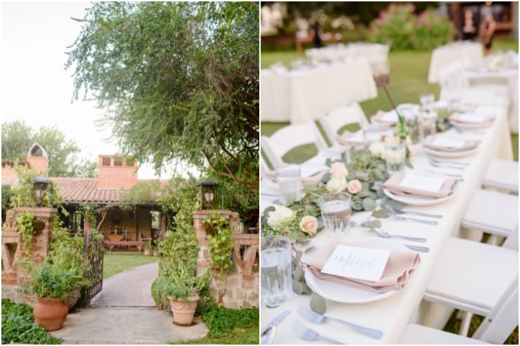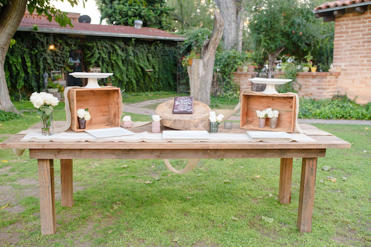 The pair chose Agua Linda Farms for their rustic destination wedding for it’s laid back charm and naturally elegant atmosphere. On the big day, the happy couple exchanged vows in an outdoor ceremony then welcomed guests to a garden party reception where soft blush details and eucalyptus runners continued the design’s romantic vibe. We love the little details–like floral print paper fans, hand scripted signs and a sweet spread of desserts in lieu of a traditional cake. Thank you to The Amburgeys for the beautiful images!