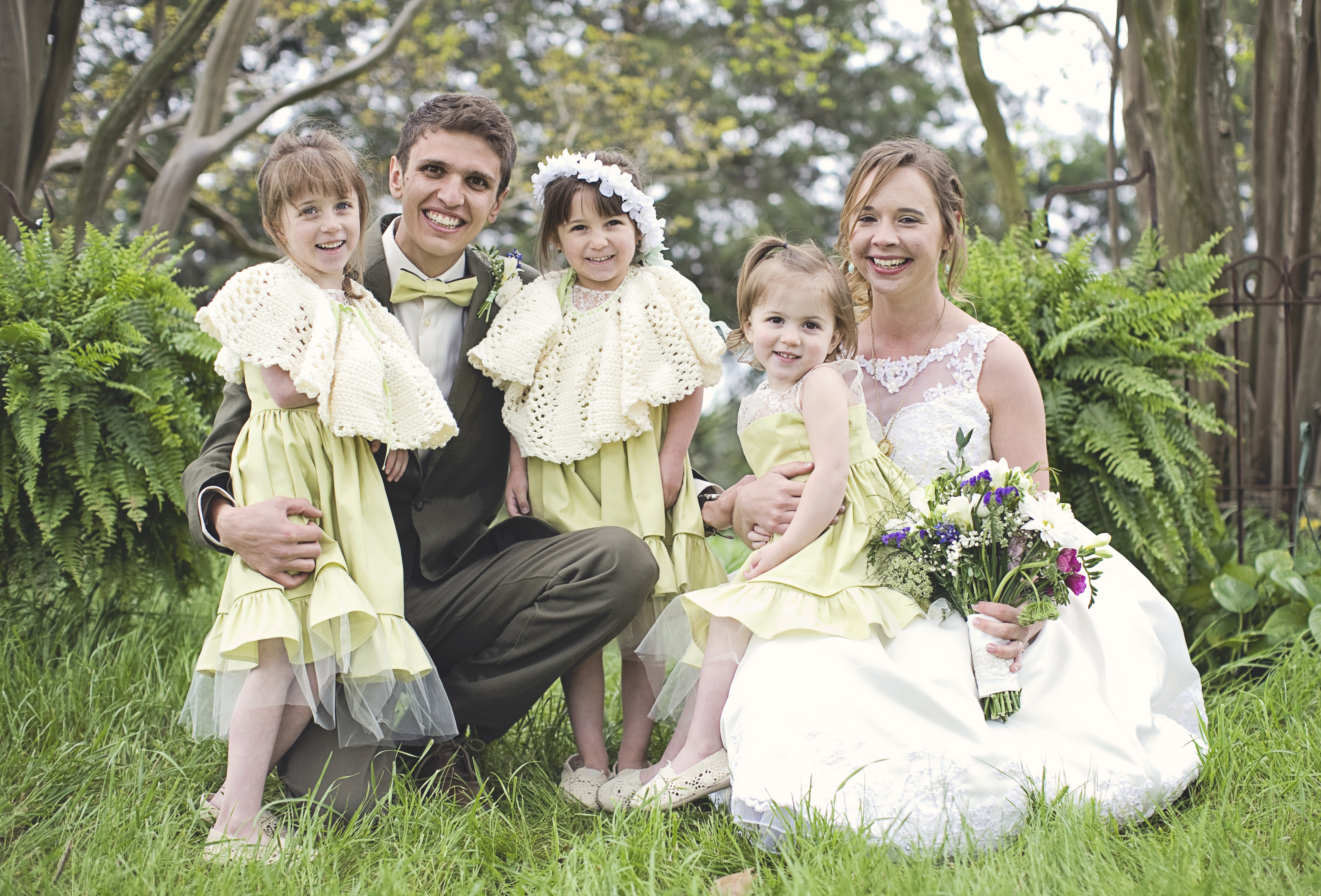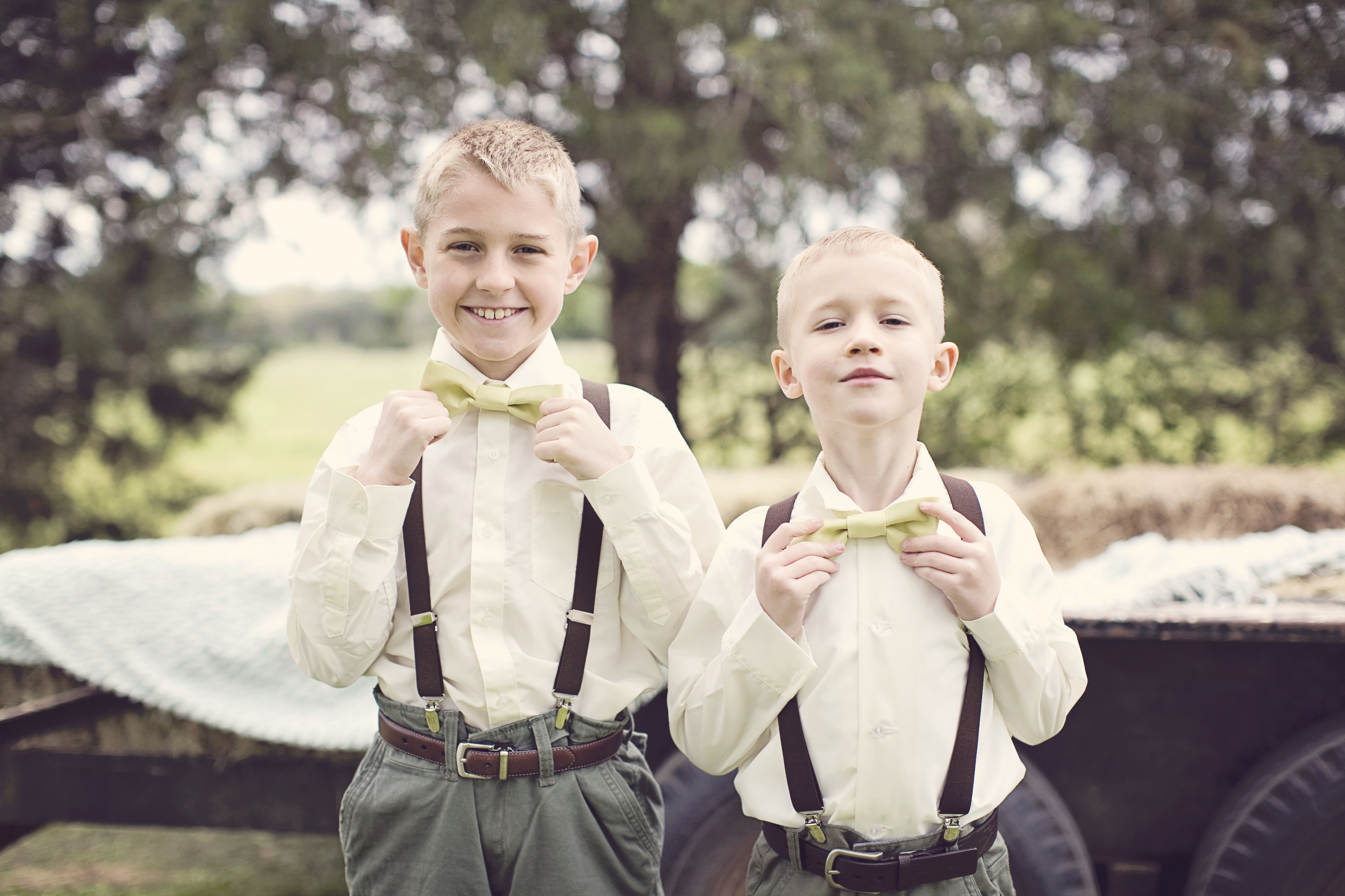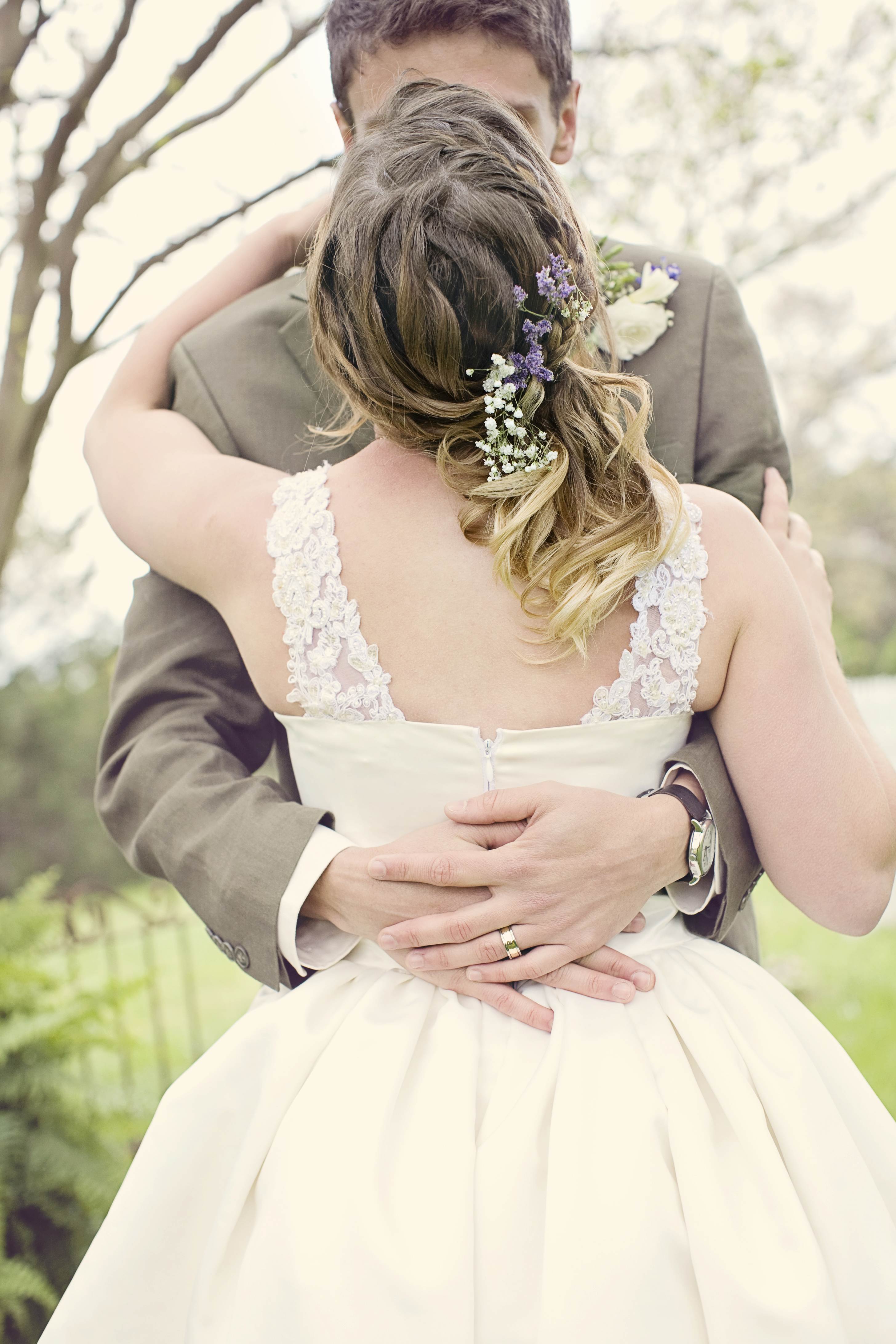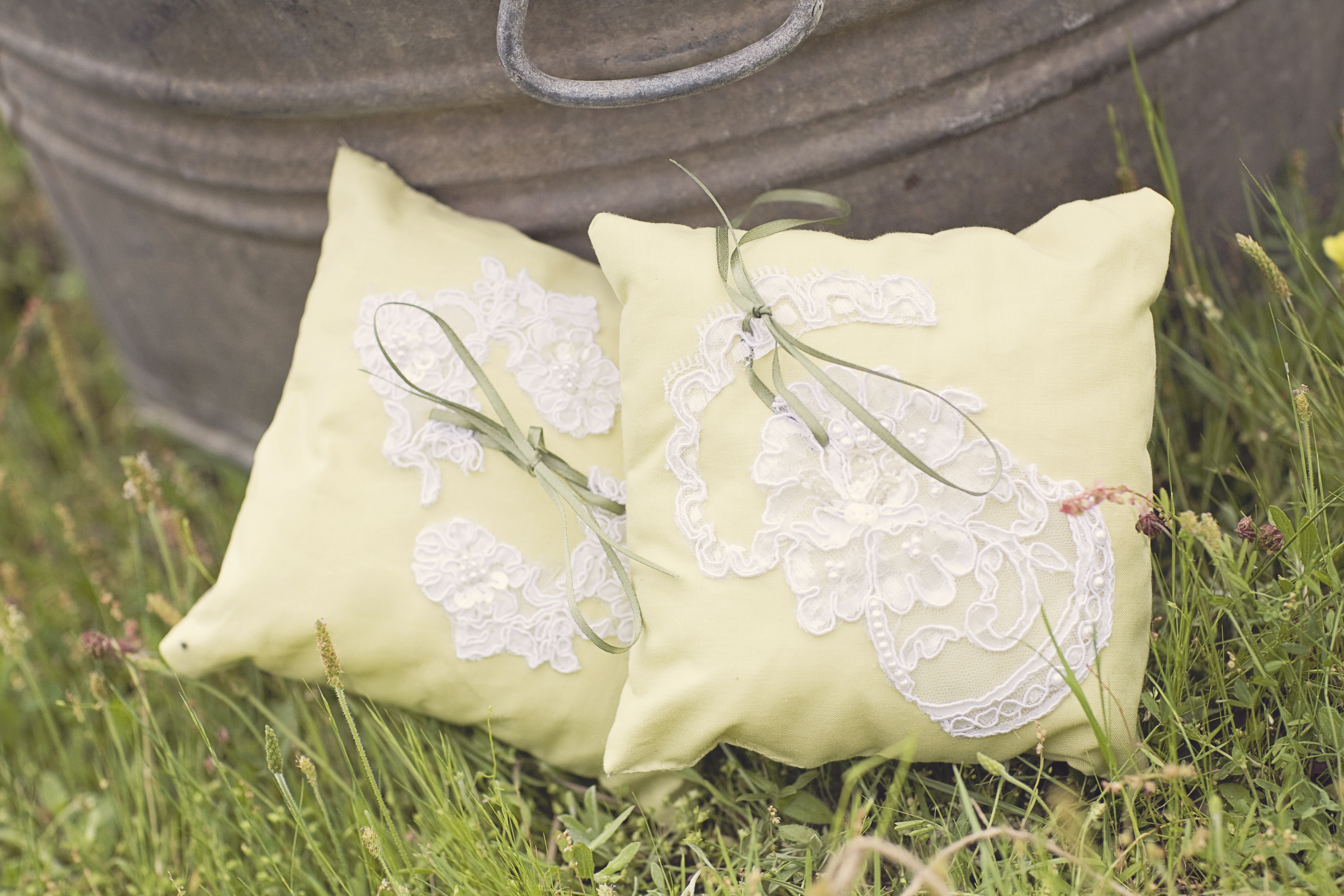 Immediately after the proposal, Tiffanie’s parents began to plant bluebonnets and wildflowers around the wedding site. Unfortunately, these flowers came up in only a limited quantity. But then, a few days before the wedding, the fields burst into a brilliant yellow of unplanted wildflowers! The transformation of the hay fields into a burst of color was so beautiful and seemed incredibly miraculous. Special things of the wedding included Tiffanie’s gown, which was hand-made by her mom, hand-painted signage, bride and groom manikins at the gate, open-air dining, mason jar pies, real silverware wrapped in homespun napkins, hay rides, and outdoor games like kite flying, horseshoes, croquet, and a beanbag toss.