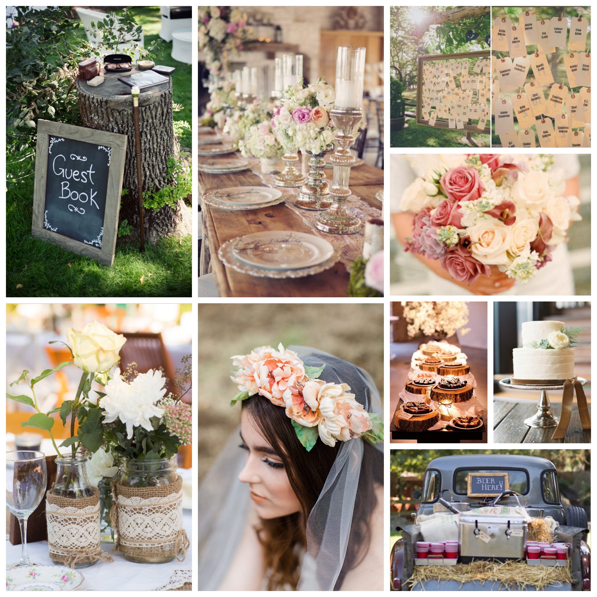 We love the vintage chic theme that is trending right now! The soft pastels, lace, and vintage mismatched plates and chairs that often make up the theme leave us feeling at home and dreamy. The additions of rustic elements like slices of wood under candles or desserts and moss accents help to continue a whimsical, rustic feel throughout the entire decor. We’re especially a fan of the flexibility that rustic weddings give you in food choices. You could have the entire meal catered or make all of the food yourself, since the rustic theme doesn’t demand smooth perfection in every detail and even becomes more charming with slight imperfections here and there. Another option we love for rustic weddings is bringing in food trucks and creating an outdoor festival or vintage tailgate feel. For example, in the photo below a classic truck with a metal cooler in the back serves as a refreshment bar for your guests.