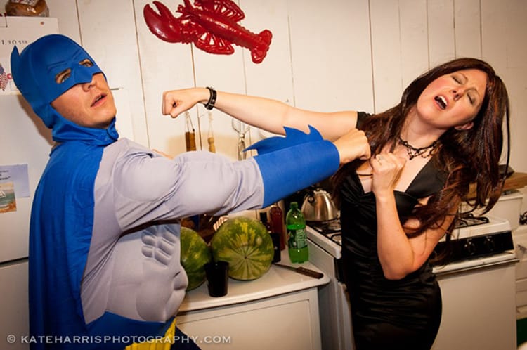 As you can probably guess from the first photo, this couple is overflowing with quirky personality. And if their wedding photos seem fun and idiosyncratic, they’re nothing compared to the story of how Sarah & Colby met. According to Kate Harris Photography,