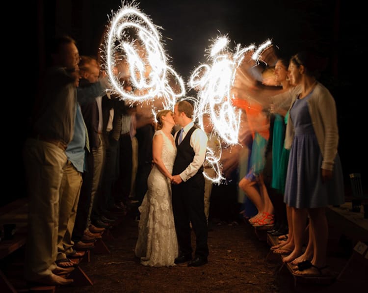 The night was capped off by a dazzling sparkler sendoff for the couple.