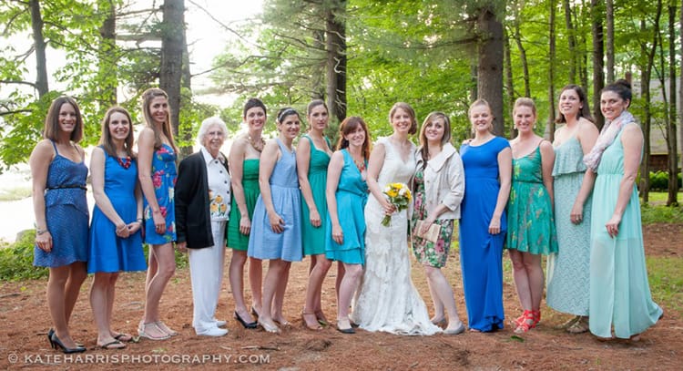 With such big personalities, Sarah & Colby ironically opted for reserved, rustic decorations, such as simple blue glass table decorations and a single bouquet for the bride, rather than having bouquets for the whole bridal party. They filled-out the rest of their wedding, however, with non-traditional decisions that expressed their quirkiness. For instance, rather than having a rehearsal dinner, they decided to have a costume party in which Colby was Batman and Sarah was Elvira. A pinata made a guest appearance at their reception. Their main dessert consisted of a cupcake array decorated to resemble the periodic table, with the chemical symbols “S” and “C” being reserved for the couple. And during dessert, they showed a homemade movie entitled Sarah & Colby’s Covalent Bonding.